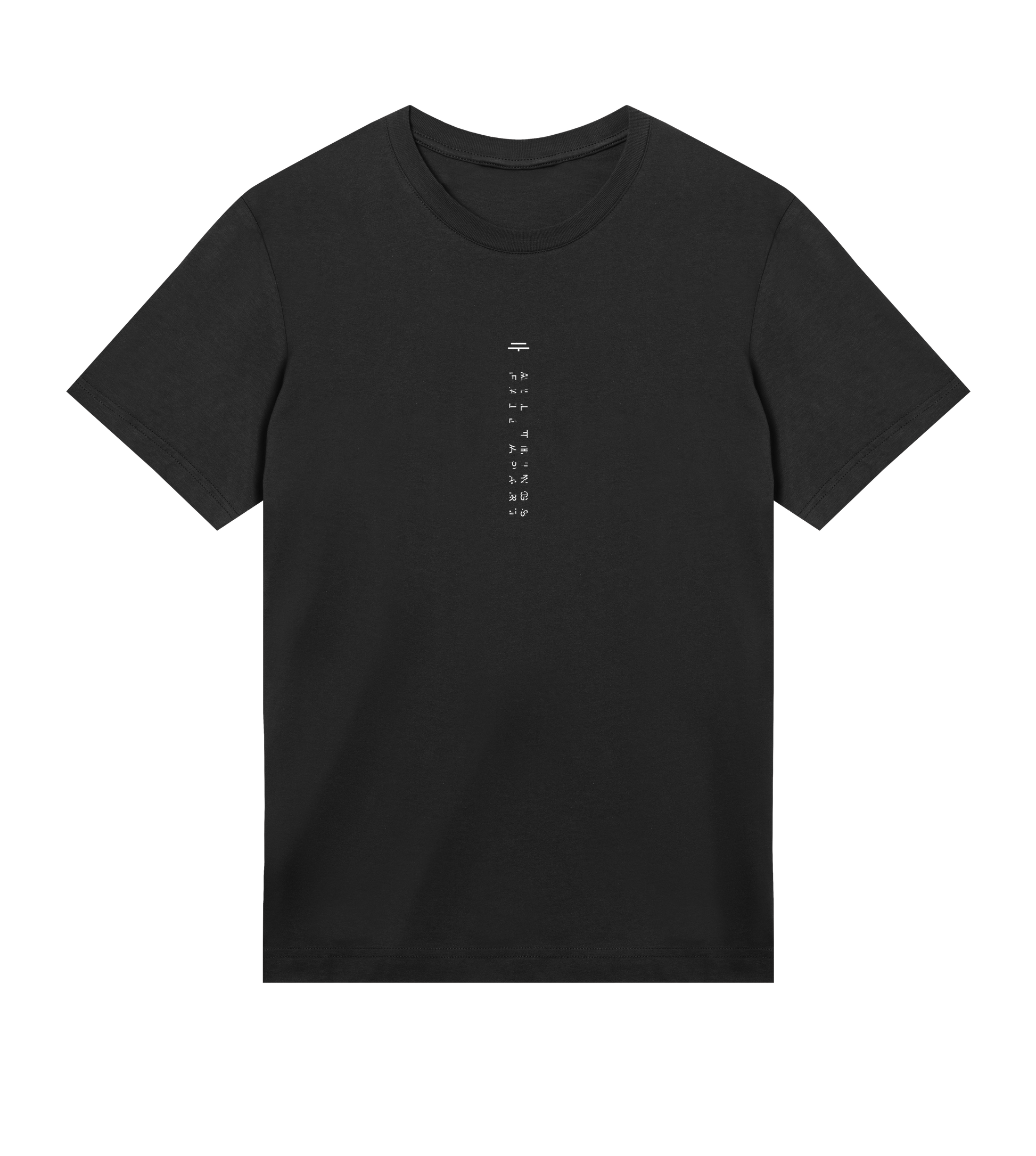 Glitched up All Things Fall Apart font under the Tom Finster logo. Only front print.