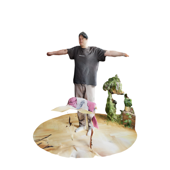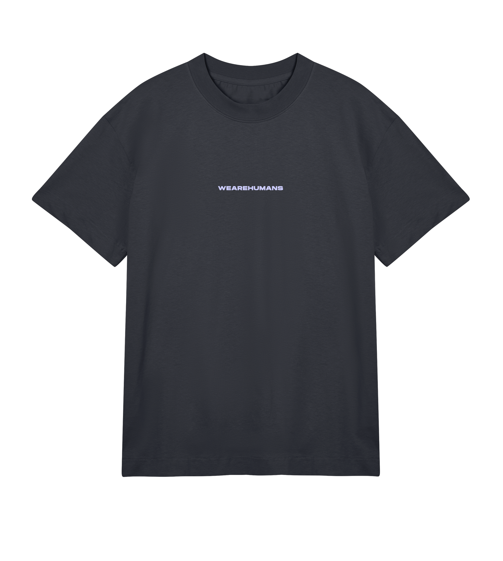 WEAREHUMANS Shirt with front and back print. Heavy garment, fits slightly larger. Tom is 1,88 and wears an XL.